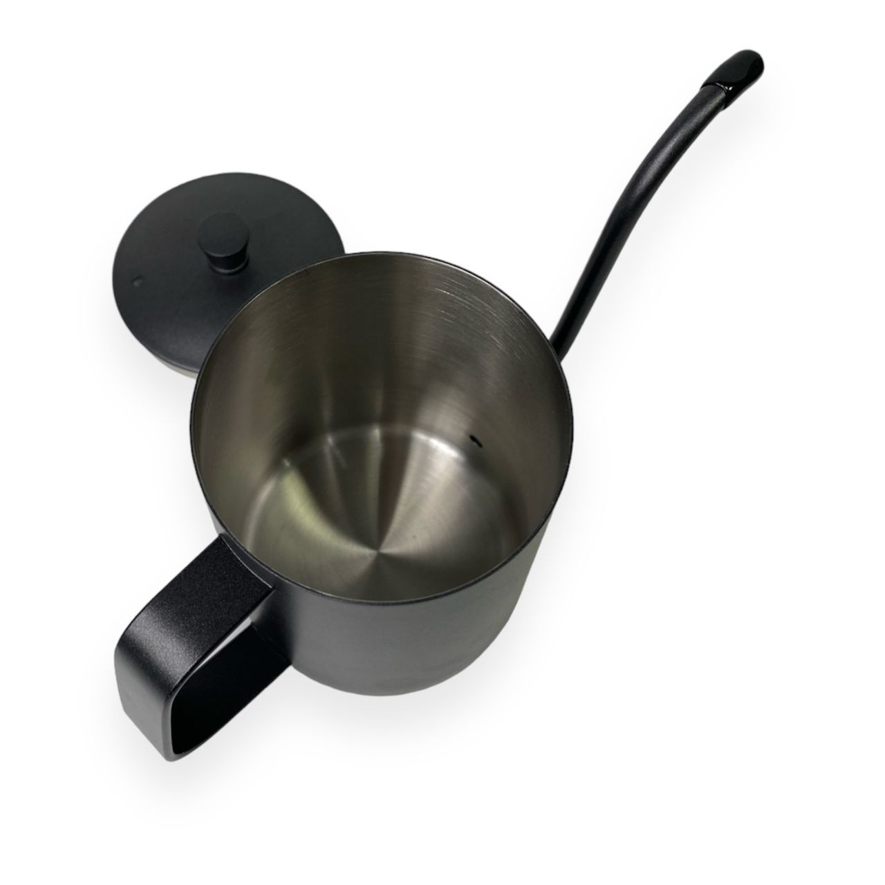 Металлический чайник с тонким носиком - незаменимый атрибут профессионального бариста. Этот чайник необходим при альтернативных способах заваривания кофе. Чайник выполнен из стали, объем 600мл.